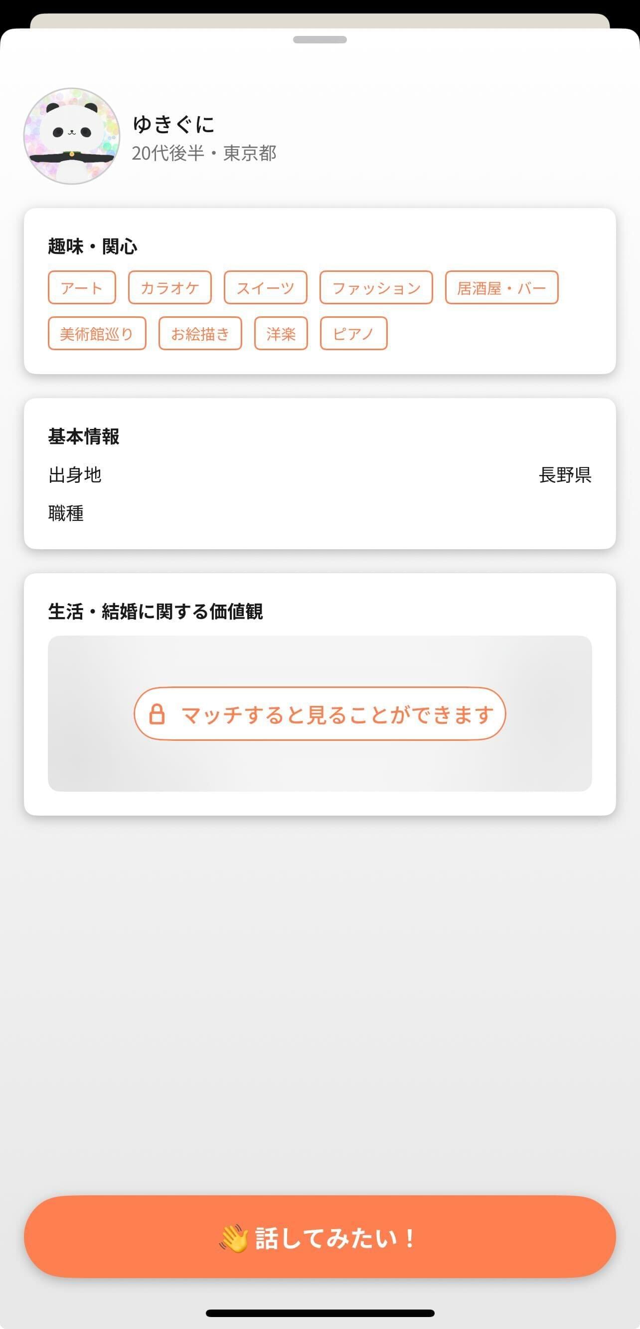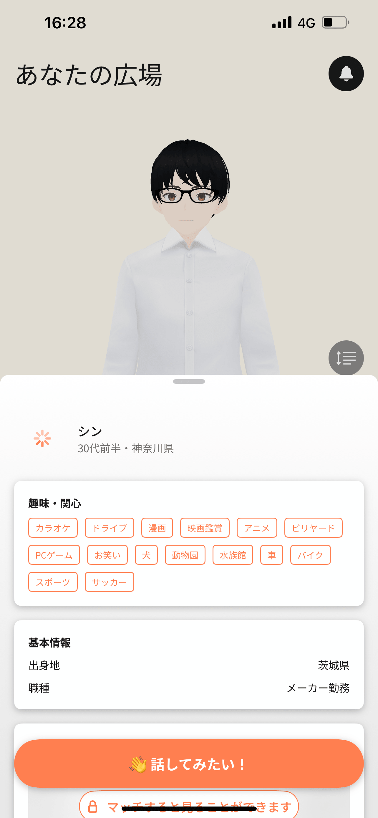 広場に表示されたお相手には「話したい」を送信することが出来ます。